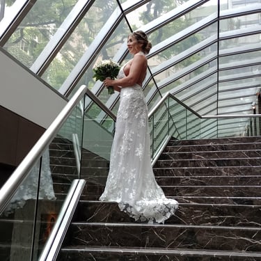 El vestido quedó increíble! Costó porque me la compliqué bastante con el modelo que elegí. Pero Abril estuvo a la altura de poder resolver todas las dificultades que se presentaron y buscó todas las soluciones posibles para que quede soñado! Destaco la paciencia y que me haya acompañado el día de mi boda… una tranquilidad enorme que haya estado ahí! Y además se quedó en la ceremonia y un rato más por si la necesitaba. Gracias Abril